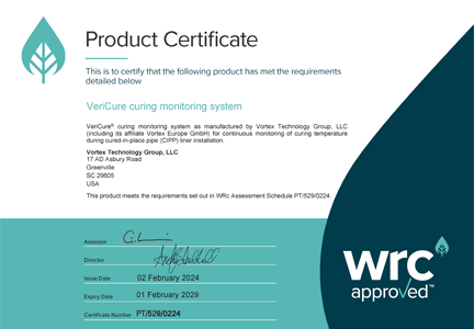 VORTEX TECHNOLOGY GROUP RECEIVES WRC APPROVAL FOR VERICURE® CIPP CURING MONITORING SYSTEM Third-Party...